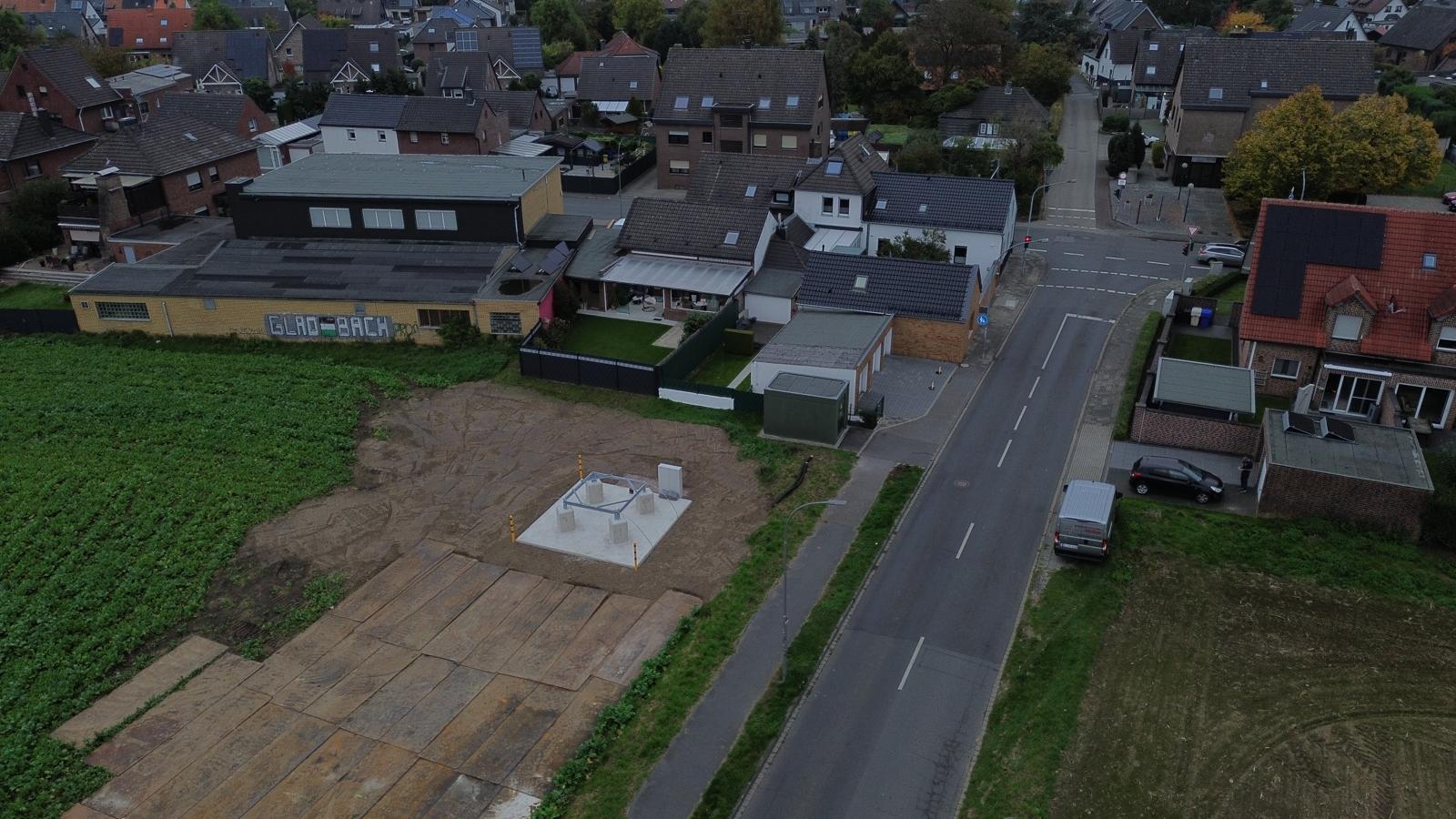 Hier ein Youtube-Video: Ein Rundflug um die Baustelle mit Blick auf den Ortsteil Sittard und die große Freifläche, die auch einen anderen Standort ermöglicht hätte.