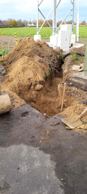 13.11.2025: Der Irrsinn geht weiter! Erdarbeiten, ermöglichen den Anschluss an das Stromnetz und Glasfaserkabelnetz.