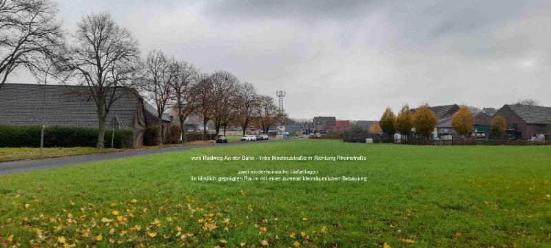Standort: Radweg An der Bahn - links die Mosterzstraße in Richtung Rheinstraße - auch hier wieder zwei niederrheinische Hofanlagen im ländlich geprägten Raum mit einer zumeist kleinräumlichen Bebauung